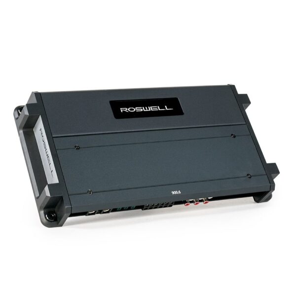 The R1 900.6 marine-grade amplifier, made by Roswell, is everything your boats audio system has always wanted. Utilizing a 6-channel Class-D design that puts out 100 watts RMS per channel at 4Ω, these amps are perfect for powering your R1 8″ and R1 6.5″ in-boat speaker setup. It features calibrated crossover controls, differential RCA inputs for maximum noise rejection, fully conformal-coated PCB’s, and nickel-plated marine-grade wire terminals.